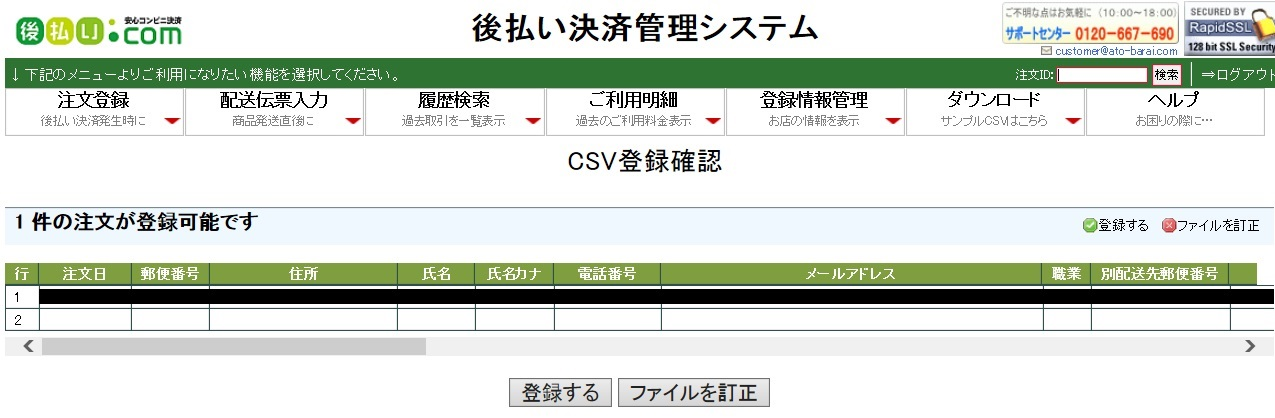 ③CSV登録画面にて内容を確認し、登録するを行います。