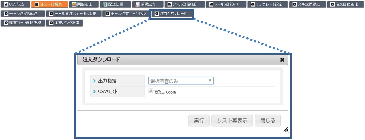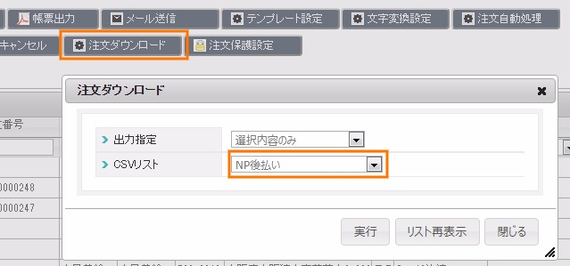 2.注文管理>注文管理>注文ダウンロード>NP後払い
