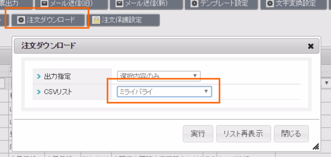 1.注文管理>注文管理>注文ダウンロード>ミライバライ