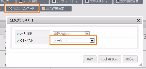 2.注文管理>注文管理>注文ダウンロード>アトディーネ