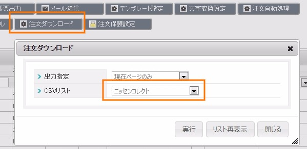 2.注文管理>注文管理>注文ダウンロード>ニッセンコレクト