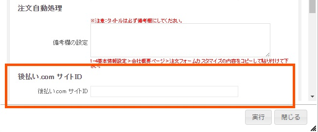 ※店舗情報画面にて、後払い.comサイトIDが入力されていることが必要です。